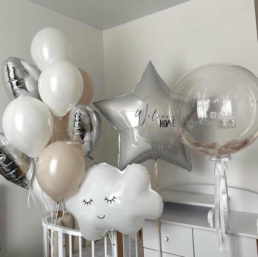 - 1 ПРОЗРАЧНЫЙ ШАР БАБЛС (60см), С ПЕРЬЯМИ И ТЕКСТОМ;